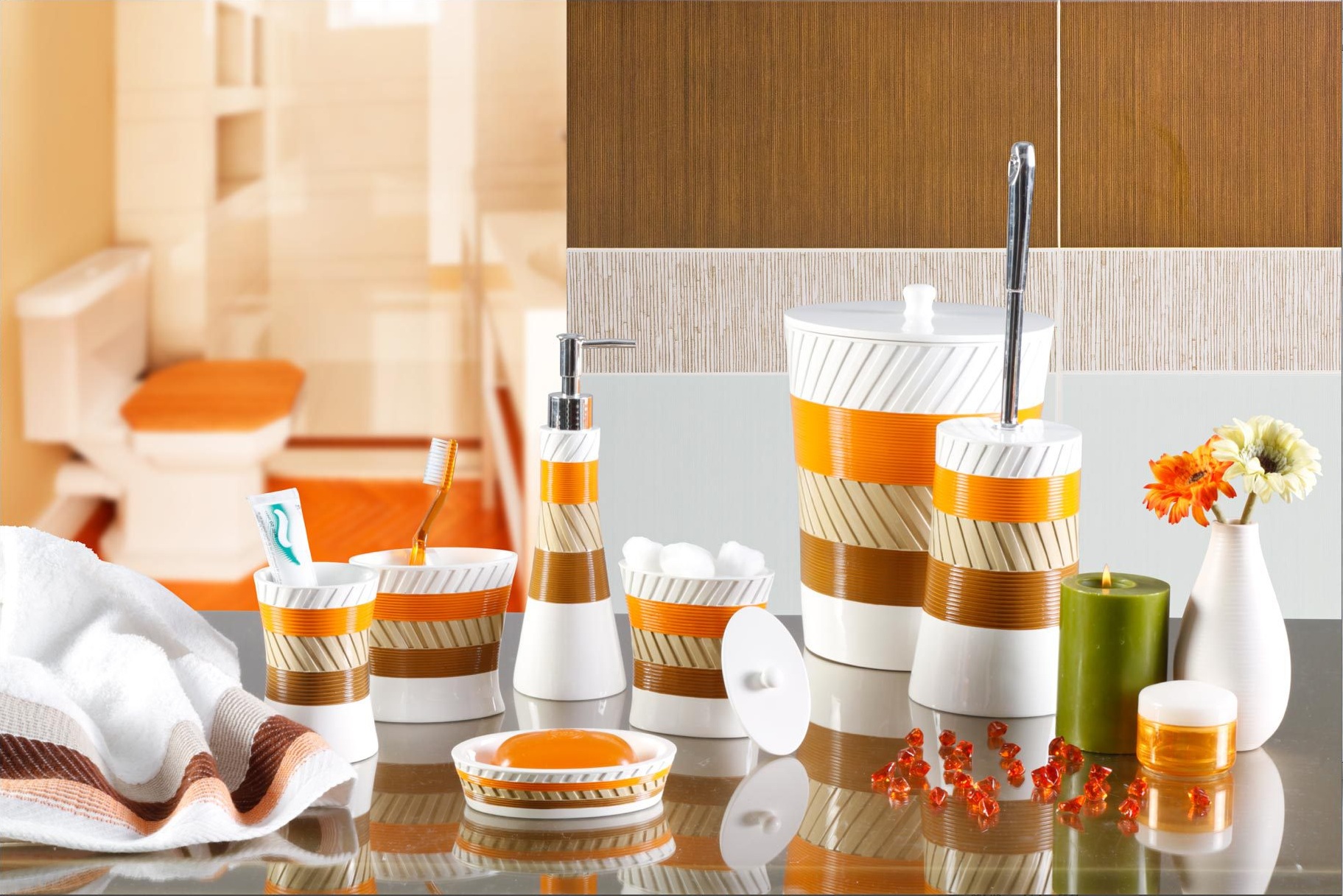 Наиболее распространенными материалами для изготовления аксессуаров в ванные комнаты являются: