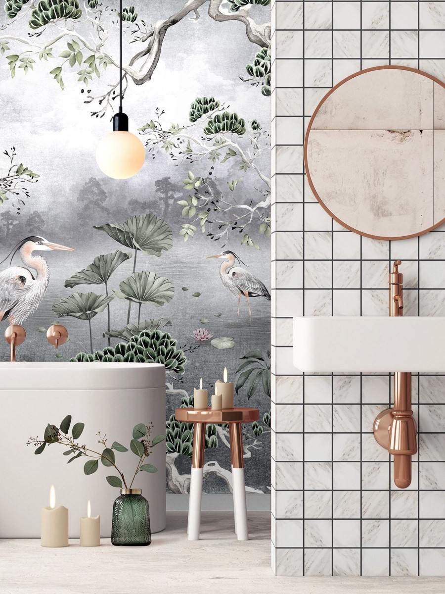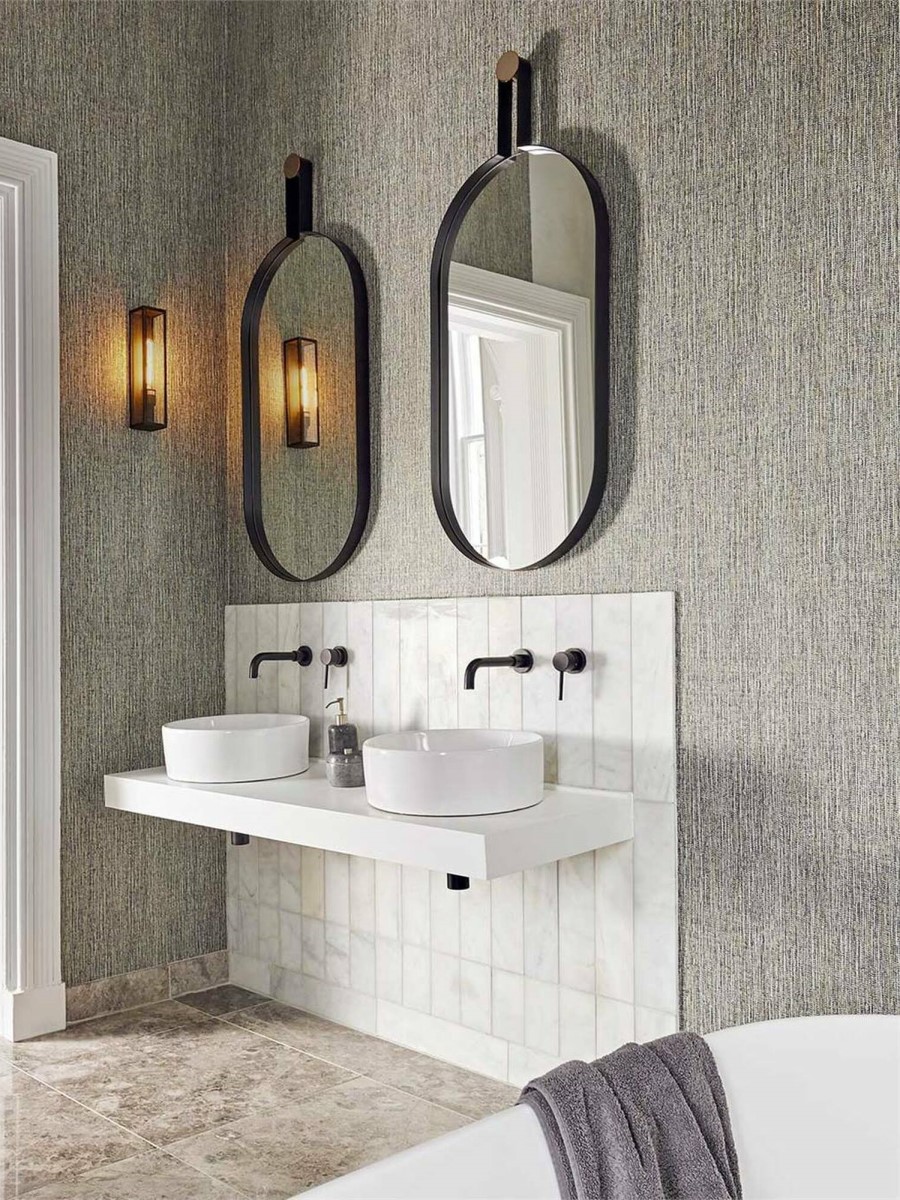 Дизайнеры призывают нас к смелым экспериментам! Обратите внимание на устойчивые к влажности обои. Они точно не похожи на те “моющие обои”, которые всем знакомы из детства. Качественные современные обои имеют приятную текстуру и тысячи вариантов необыкновенного дизайна. В самых проблемных местах у раковины или ванны обезопасить обои можно несколькими слоями специального защитного лака или стеклянного покрытия.