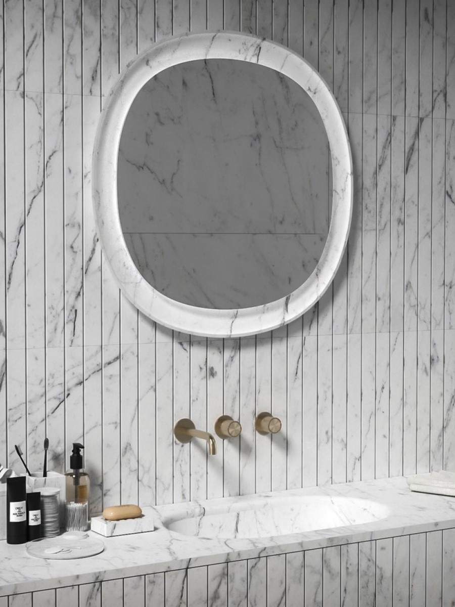 Красивые зеркала различных форм - круглые, овальные, прямоугольные, обрамленные как в тонкую лаконичную, так и золотую декоративную раму, придает особого изыска. Главное - подобрать этот аксессуар, чтобы он соответствовал общей атмосфере санузла. Для любителей технологичных новинок - умные зеркала с подогревом, подсветкой, часами и даже встроенными колонками.