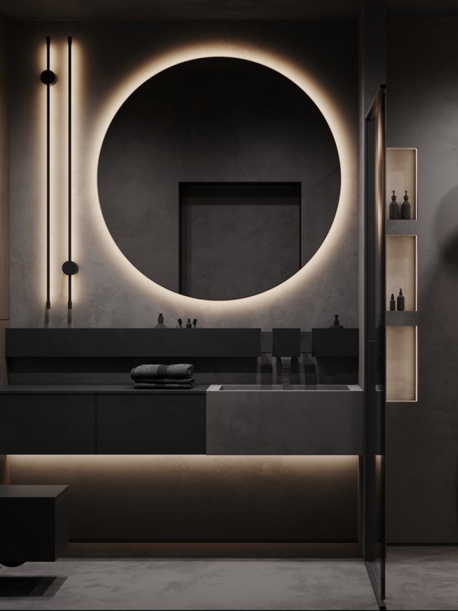 Регулирующийся диммерами уровень освещения в ванной комнате позволит менять общую атмосферу: от романтической и расслабляющей до яркой и бодрящей.