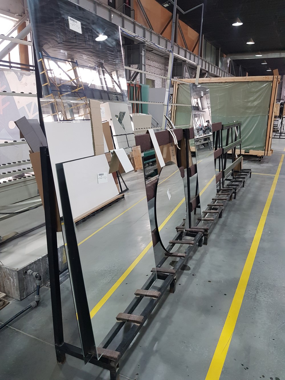 Мы с дизайнерами собственными глазами увидели полный цикл производства зеркал: начиная от порезки полотна и заканчивая его упаковкой и подготовкой к транспортировке, познакомились с методикой определения качества и трепетным отношением производителя даже к мельчайшим деталям своей продукции. Зеркала Либерта укомплектованы фирменной светодиодной лентой, блоками питания собственного производства - упаковку и даже пенопласт фабрика производит самостоятельно для исключения брака.