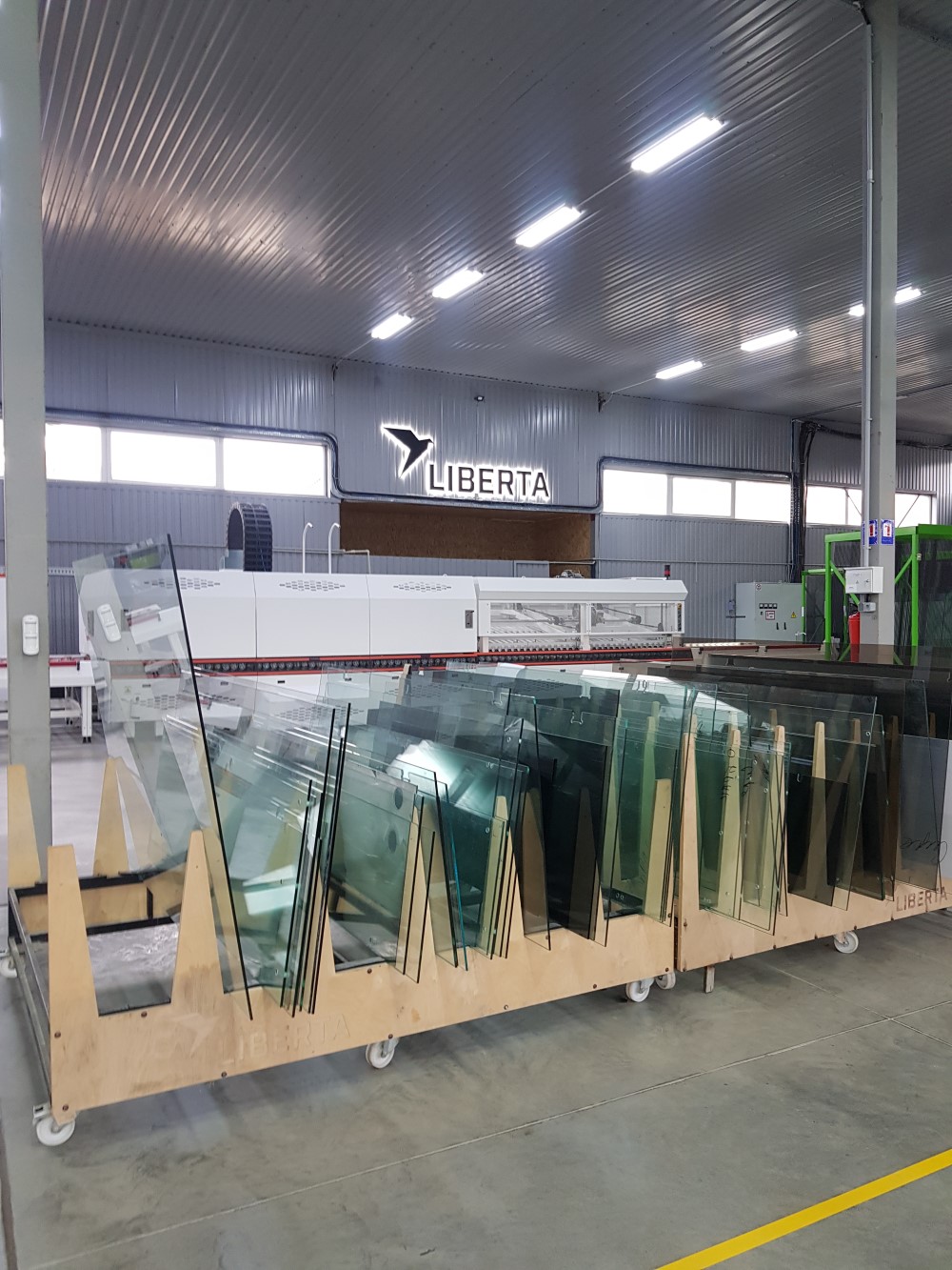 Для производства душевых кабин, перегородок и раздвижных систем фабрика Liberta использует закаленное стекло, отличающееся своей ударостойкостью, прочностью, а также высоким уровнем безопасности. В 2021 году фабрика запустила собственную линию закалки стекла. Благодаря этому была обеспечена полная независимость производства LIBERTA от европейских подрядчиков и высочайшее качество продукта, ведь новая печь закалки стекла используется исключительно под собственные нужды производства (отсутствие сторонних заказов с некачественным стеклом). Внедрение нового оборудования также позволило существенно уменьшить сроки изготовления заказов.