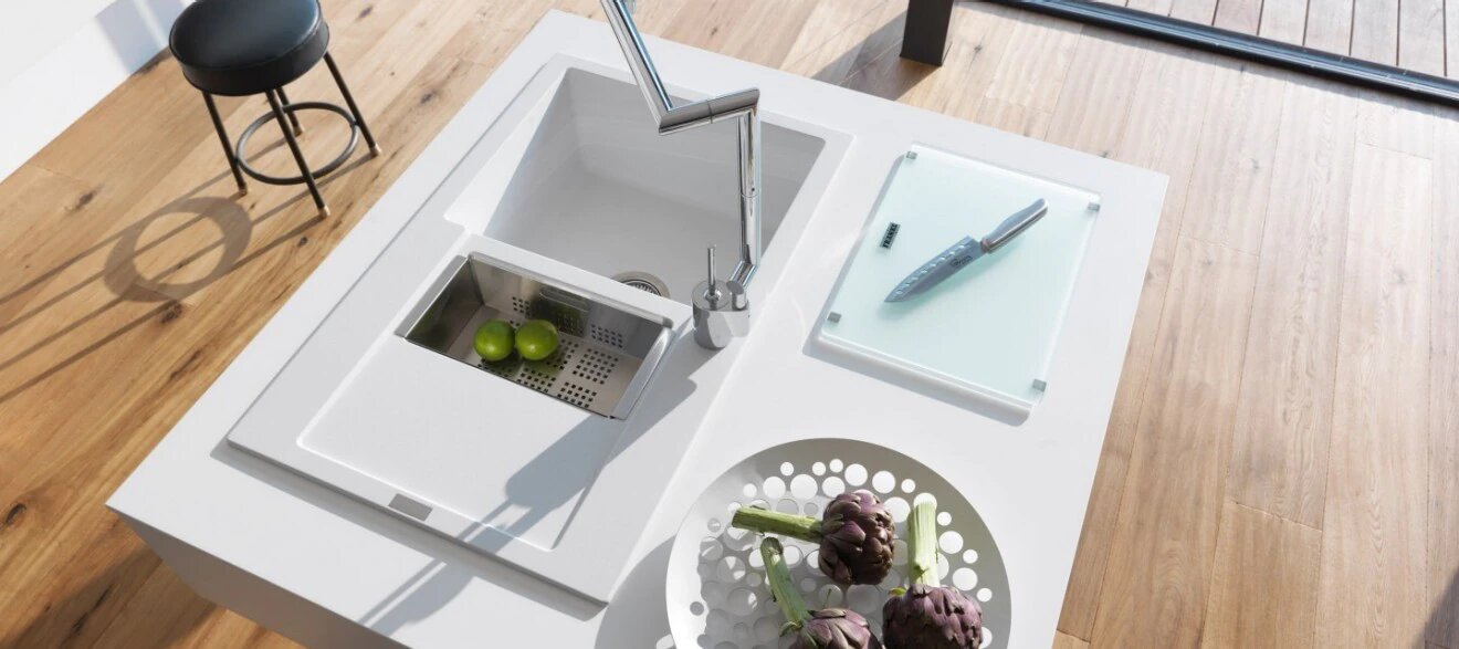 Интегрированная мойка достоточно сложна в установке, но подкупает своим элегантным внешним видом