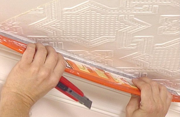 • Обойный нож, который вполне можно заменить канцелярским, ведь обои для потолка в большинстве тонкие и легкие.