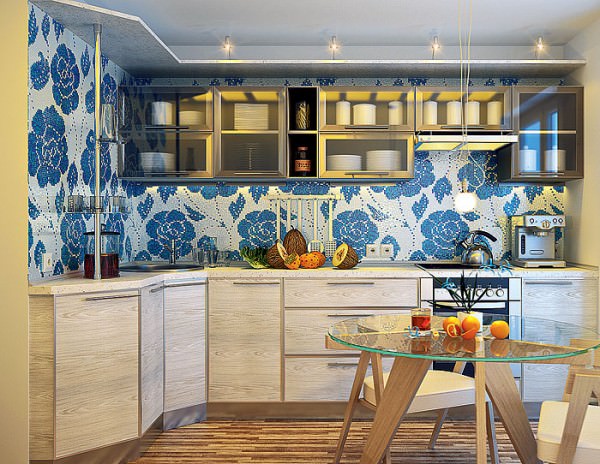 Инновации в области производства настенных покрытий позволили использовать обои во время обустройства помещений с повышенным парообразованием. Виниловые, флизелиновые, дуплекс, жидкие, стекловолокнистые шпалеры отличаются отменной износоустойчивостью и разнообразием ассортимента, дополняя оригинальность интерьера кухни.