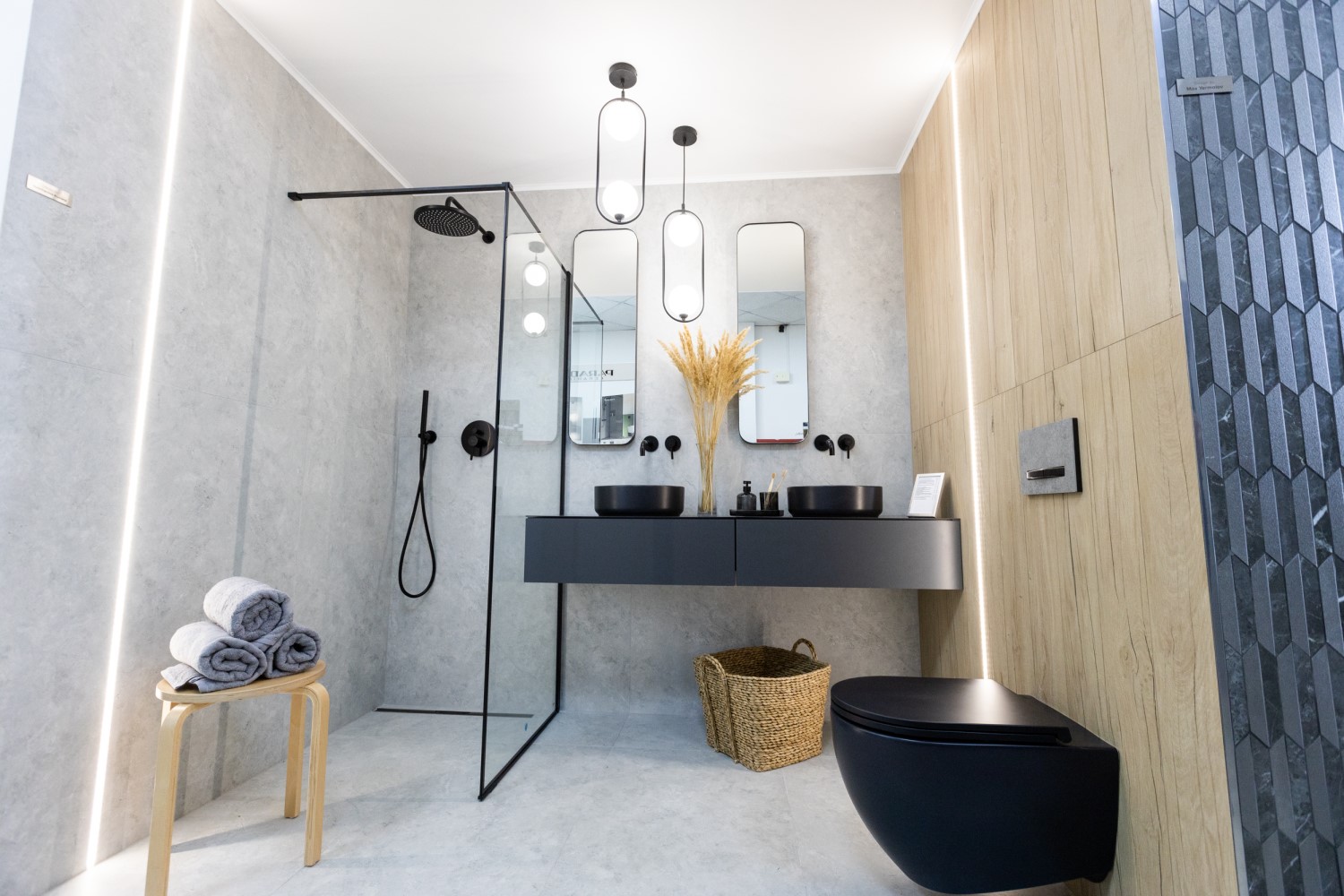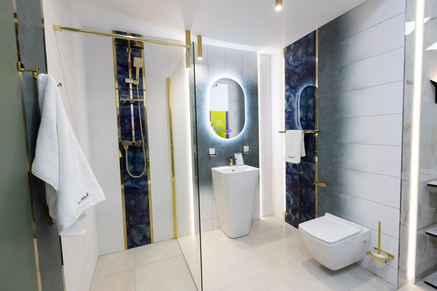 Шоурум представлен интерпретациями интерьеров ванных комнат, выполненных в различных стилях, а также впечатляющей зоной ресепшн нашего салона и визуальными решениями предметного дизайна с использованием новейших коллекций плиты Paradyz.