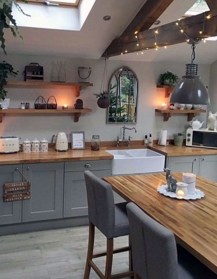 Одно из главных преимуществ большого дома - возможность заранее спроектировать и выбрать наилучшую зону для размещения кухни вашей мечты. В доме, будь-то деревянный особняк, городской коттедж или дача, место под кухню лучше выбрать у окна, ведь сканди стиль приветствует максимум света, в том числе и естественного.