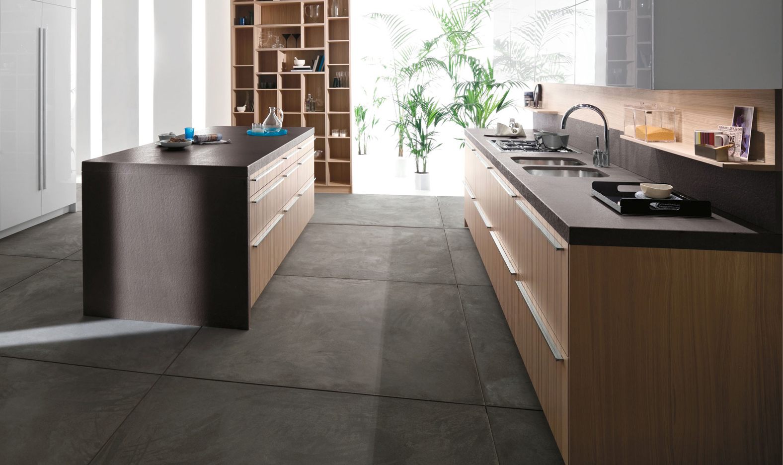 Широкоформатний керамограніт - ефектний та міцний матеріал для кухонної підлоги.
