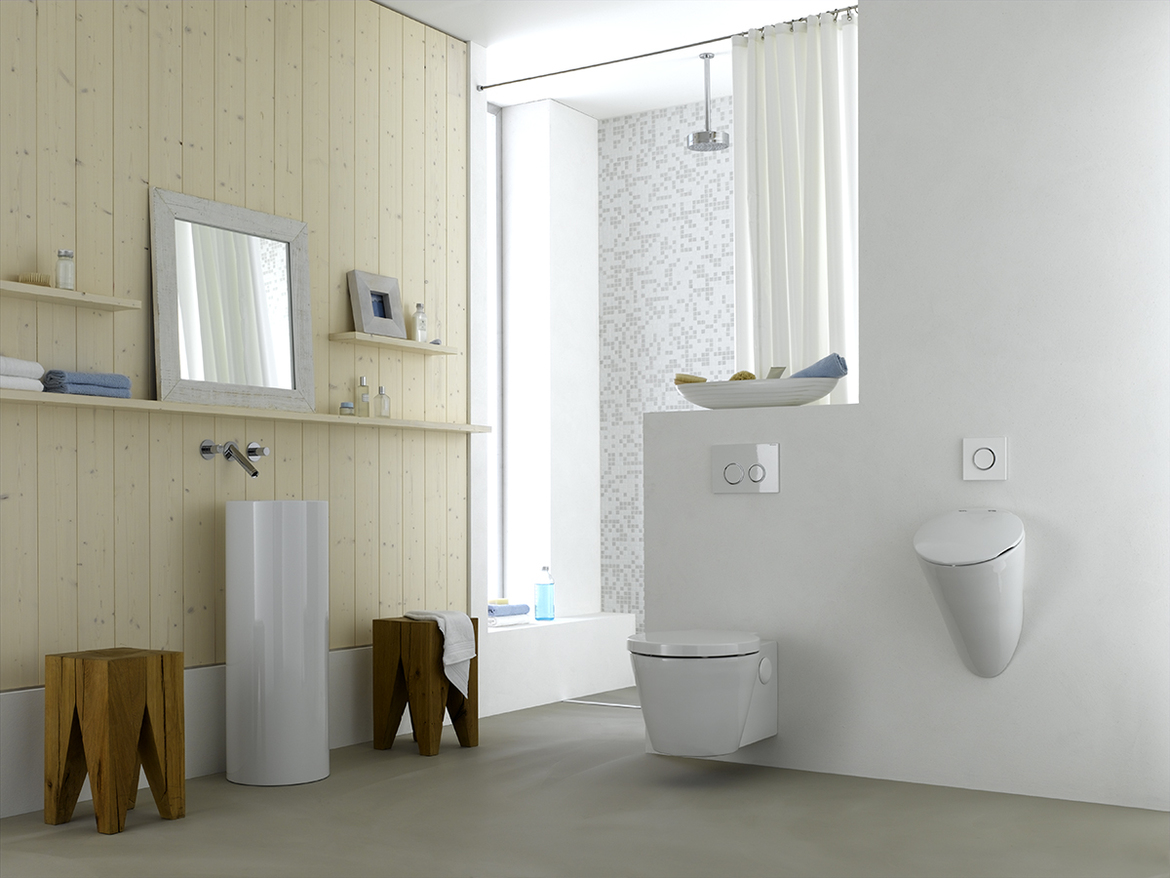 Підвісний урінал давно став класикою жанру: він і виглядає ефектно, і користуватися зручно, і прибирати кімнату легко (на фото Laufen Ilbagnoalessi One)