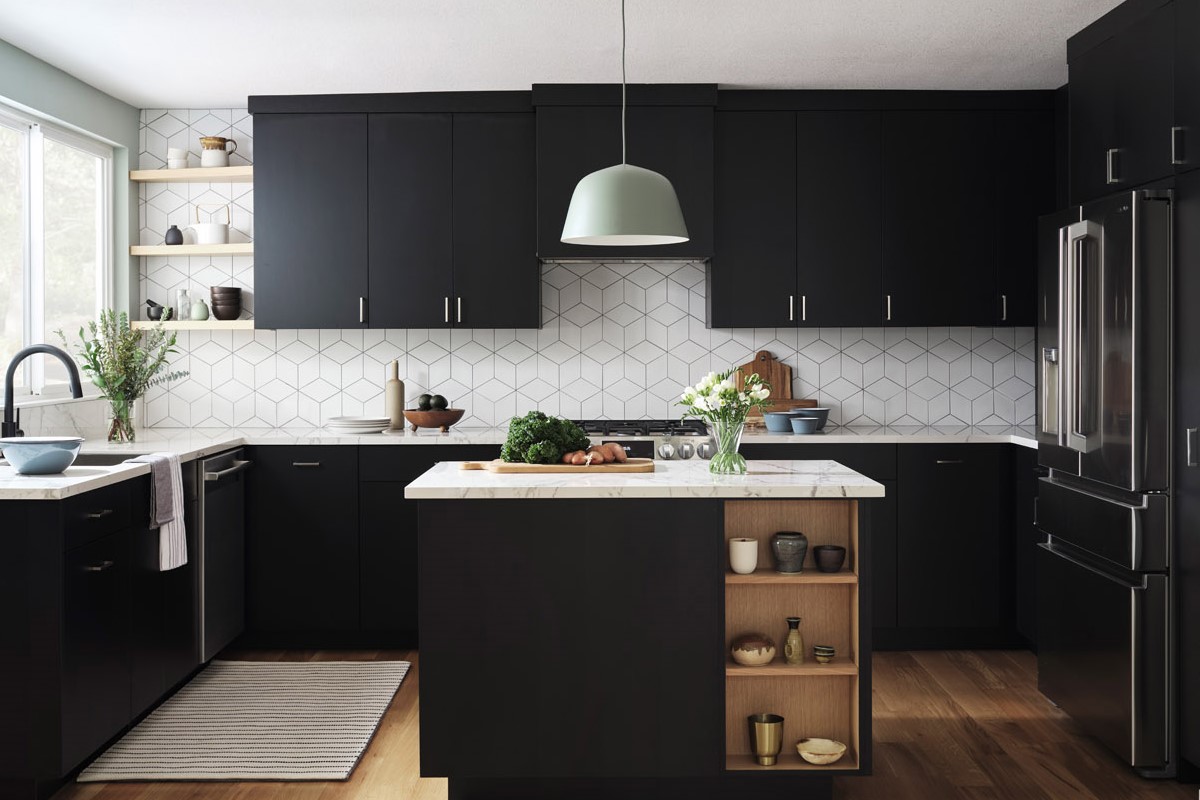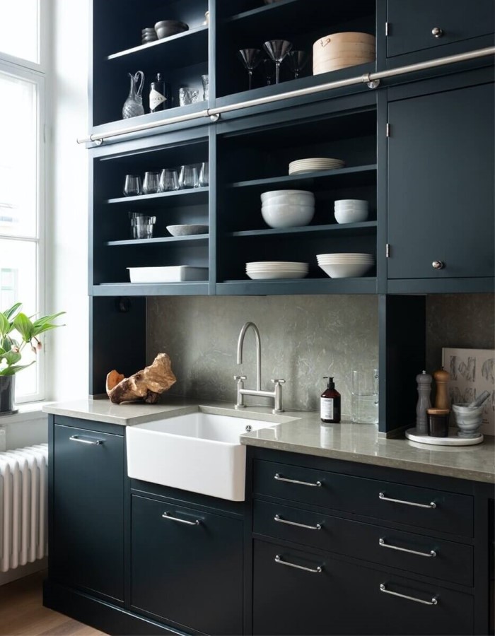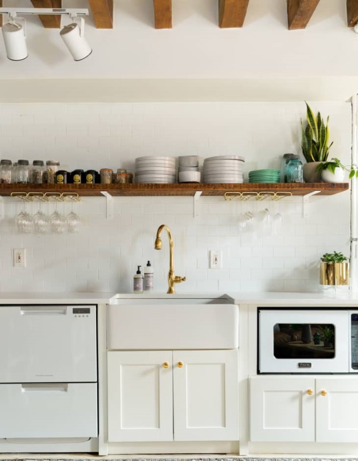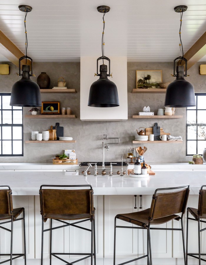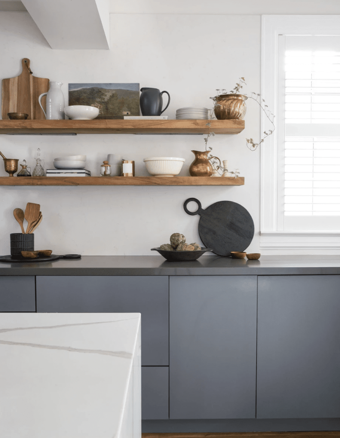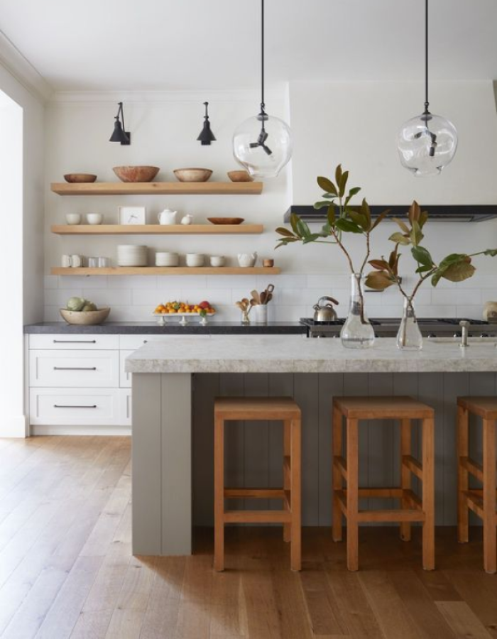 Щоб не захаращувати простір, пропонуємо вам все ж таки вибирати шафи з фасадами, особливо нижні, а для відкритих полиць залишити "видне" місце і розташувати там тільки те, на чому хочеться зосередити погляд.