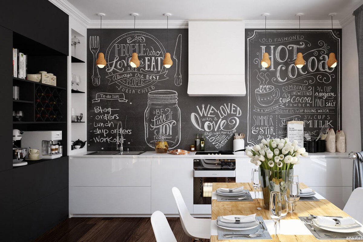 В оформленні стіни у робочої кухонної поверхні можна сміливо обирати між двома підходами: