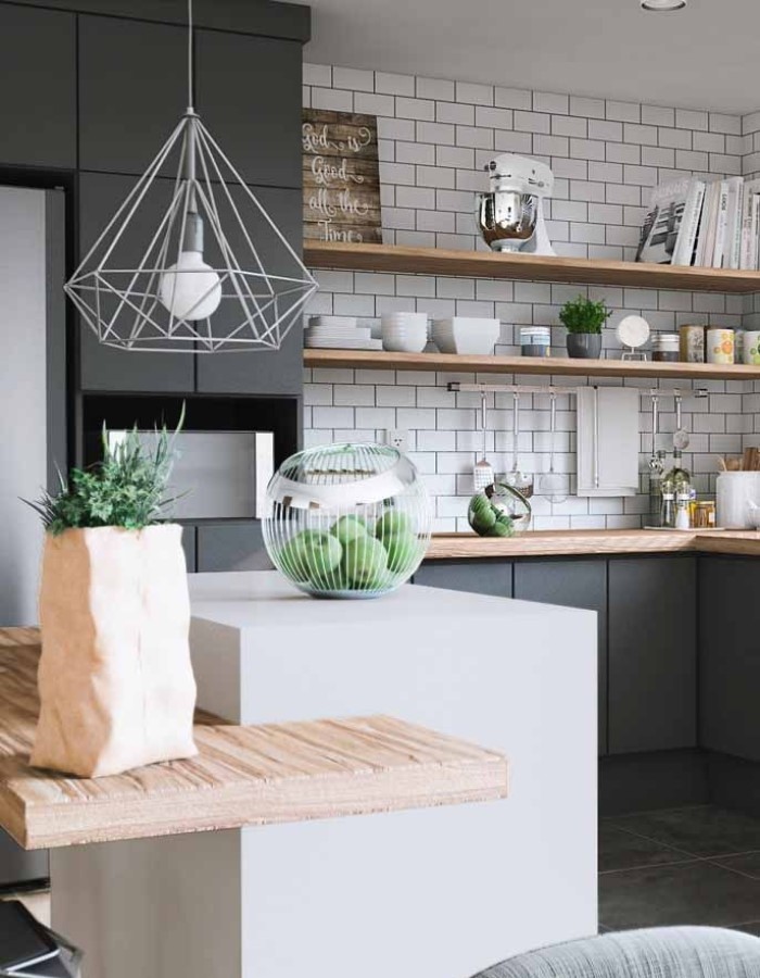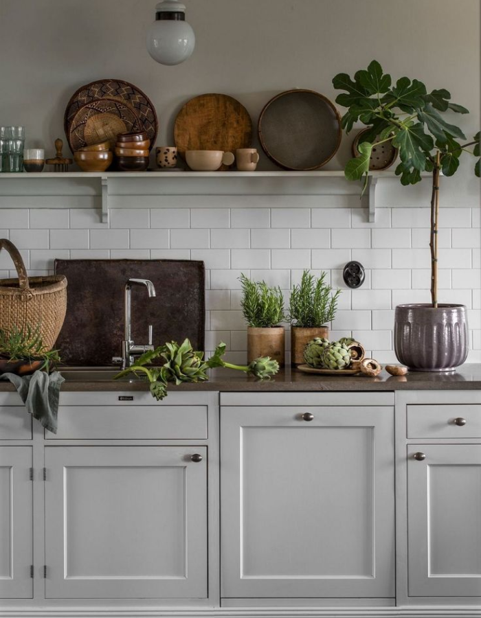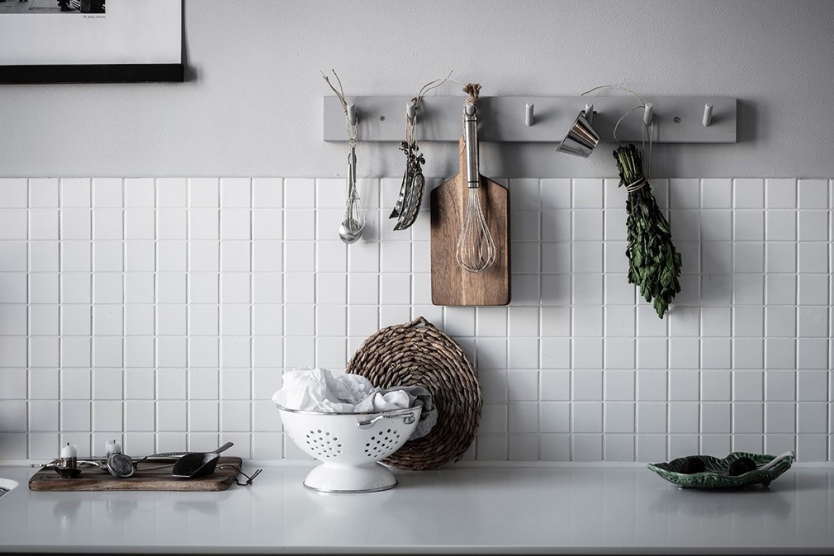 Одне з головних правил скандинавської кухні – відкрите зберігання. Це означає, що більшість посуду та начиння буде розміщуватися на полицях, стійках, гачках на рейлінгах і в кошиках. І що важливо, все це має бути в чистоті та порядку, але не обов'язково педантичному – легка недбалість цілком вітається.