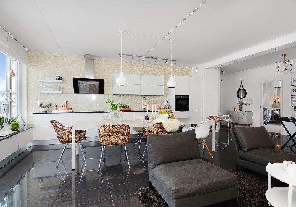 У новій квартирі з просторою кухнею-студією найкраще рішення – об'єднання зони для приготування та місця для дозвілля та відпочинку. Тим більше, скандинавські кухні дуже стильно виглядають і стають центральним об'єктом у будь-якому приміщенні. Тільки врахуйте, що властива сканді-дизайну легка недбалість не дорівнює безладу.