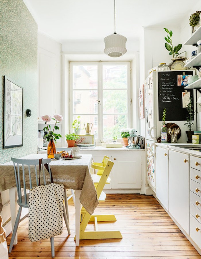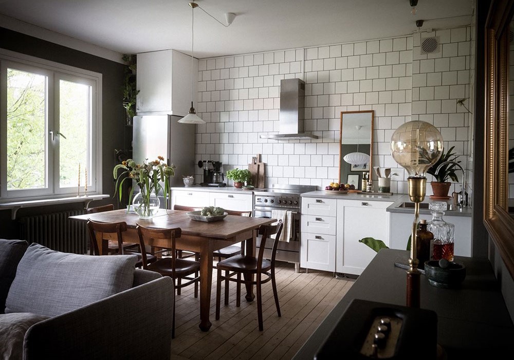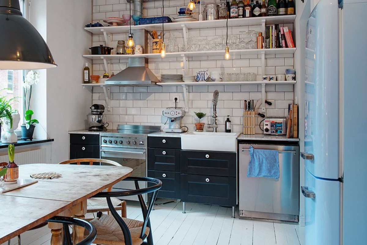 У старих будинках кухні виглядають дуже тісними. І якраз вільний скандинавський дизайн дозволяє у своїх рамках візуально розширити приміщення і зробити його просторішим та ергономічнішим. Багато світла, велика кількість білого, відкриті полиці, світла сантехніка і оздоблення, зручно розташована техніка і компактно розміщене необхідне приладдя - що ще потрібно для комфортної кухні, нехай навіть зовсім маленької?!