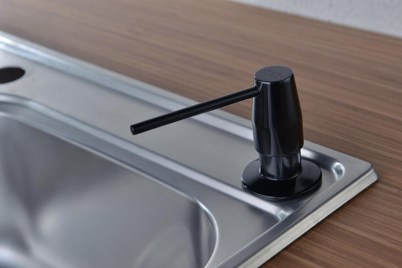 - Дозатор миючого засобу: вбудований у мийку диспенсер для миття посуду виглядає акуратніше, ніж пляшечка з таким засобом, що стоїть поруч на стільниці.