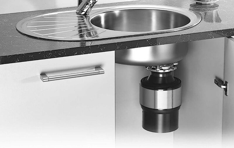 - Подрібнювач відходів: цей пристрій перемелює харчові відходи, які потрапляють у злив, за рахунок чого виключається засмічення каналізації.