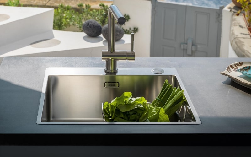 Нержавіюча сталь - найпопулярніший матеріал. Сталеві кухонні мийки мають найширший асортимент форм і розмірів і будуть доступнішими по бюджету, ніж інші варіанти. Вони стійкі до ударів і температурних перепадів, практичні у догляді: не вбирають запахи і барвники, і легко очищаються підручними засобами. Щоб обрати кухонну мийку з нержавійки варто визначитися лише з габаритами і стилем. Звернути свою увагу краще на раковини з товстих листів металу з звуковбирними підкладками, адже тонкі мийки будуть видавати сильний шум від падаючої води.