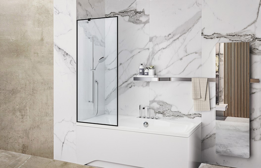 Скляна шторка Rea, що складається, виглядає солідно і займає мінімум місця над ванною.
