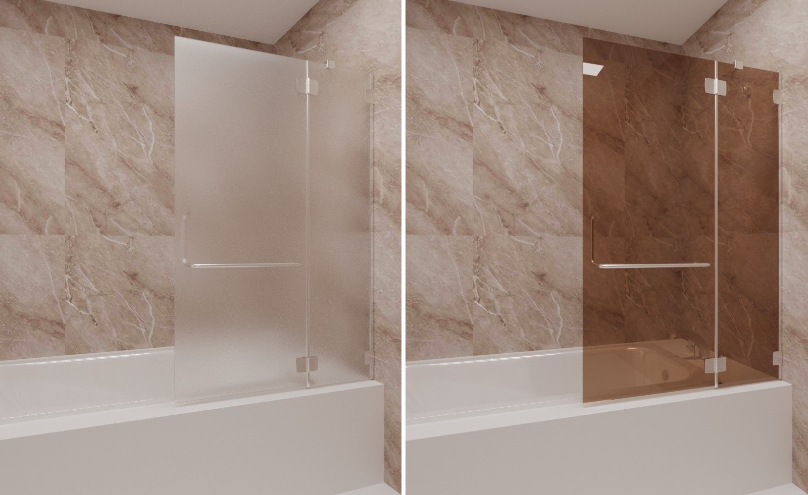 Відтінок скла шторки для ванної кімнати варто підбирати відповідно до загального дизайну інтер'єру ванної кімнати.