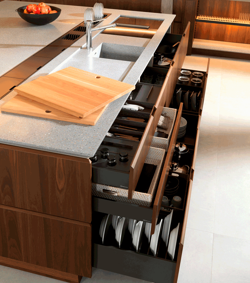 Технологические исследования и поиск новых материалов стали первоочередными задачами компании Gamadecor. Она продолжает двигаться вперед в производстве «умных» кухонь, о чем свидетельствует ее последняя работа — Smart Kitchen. Гарнитур увидит свет на XXVI Международной выставке PORCELANOSA Grupo и станет одной из самых громких новинок сезона.