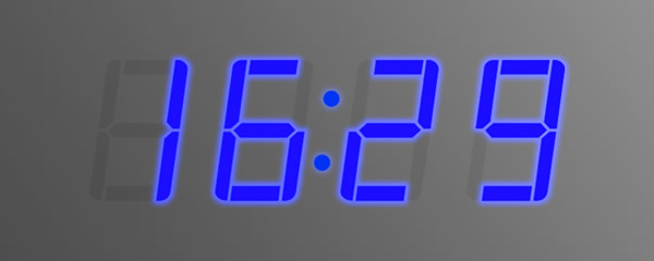 Электронные часы голубого цвета. Размер циферблата 14х48 мм. Управление часами на торце зеркала.