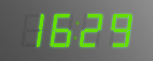 Электронные часы зеленого цвета. Размер циферблата 14х48 мм. Управление часами на торце зеркала.