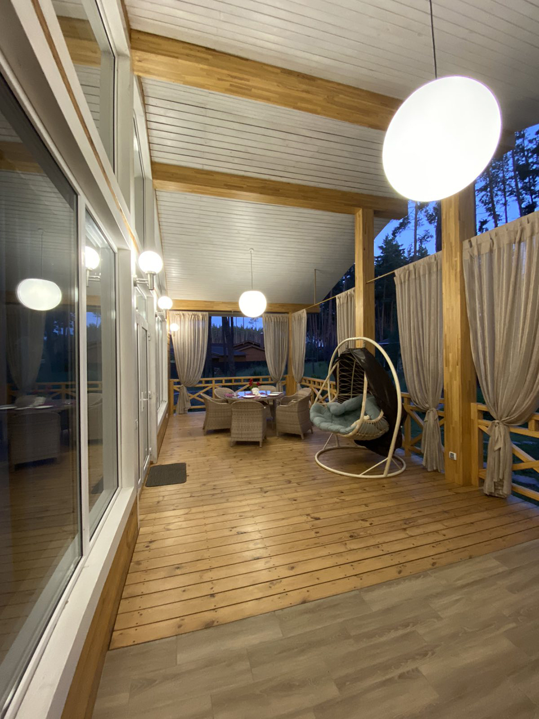 Представляем вам фотоотчет с объекта в пригороде Харькова, который комплектовал магазин Keramis. Уютная просторная веранда коттеджа в стиле Шале, дополненная камином и созданная для теплых семейных вечеров.