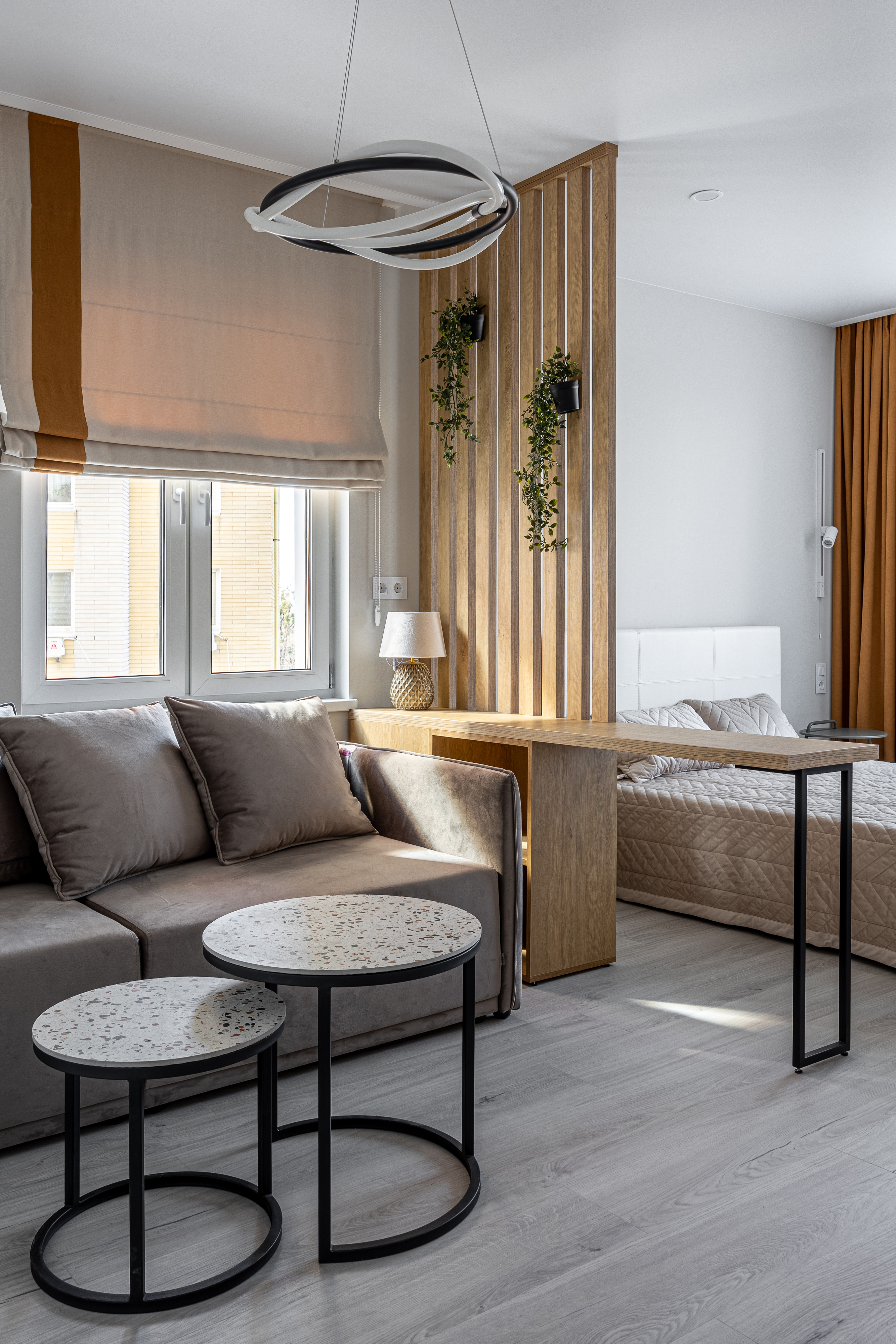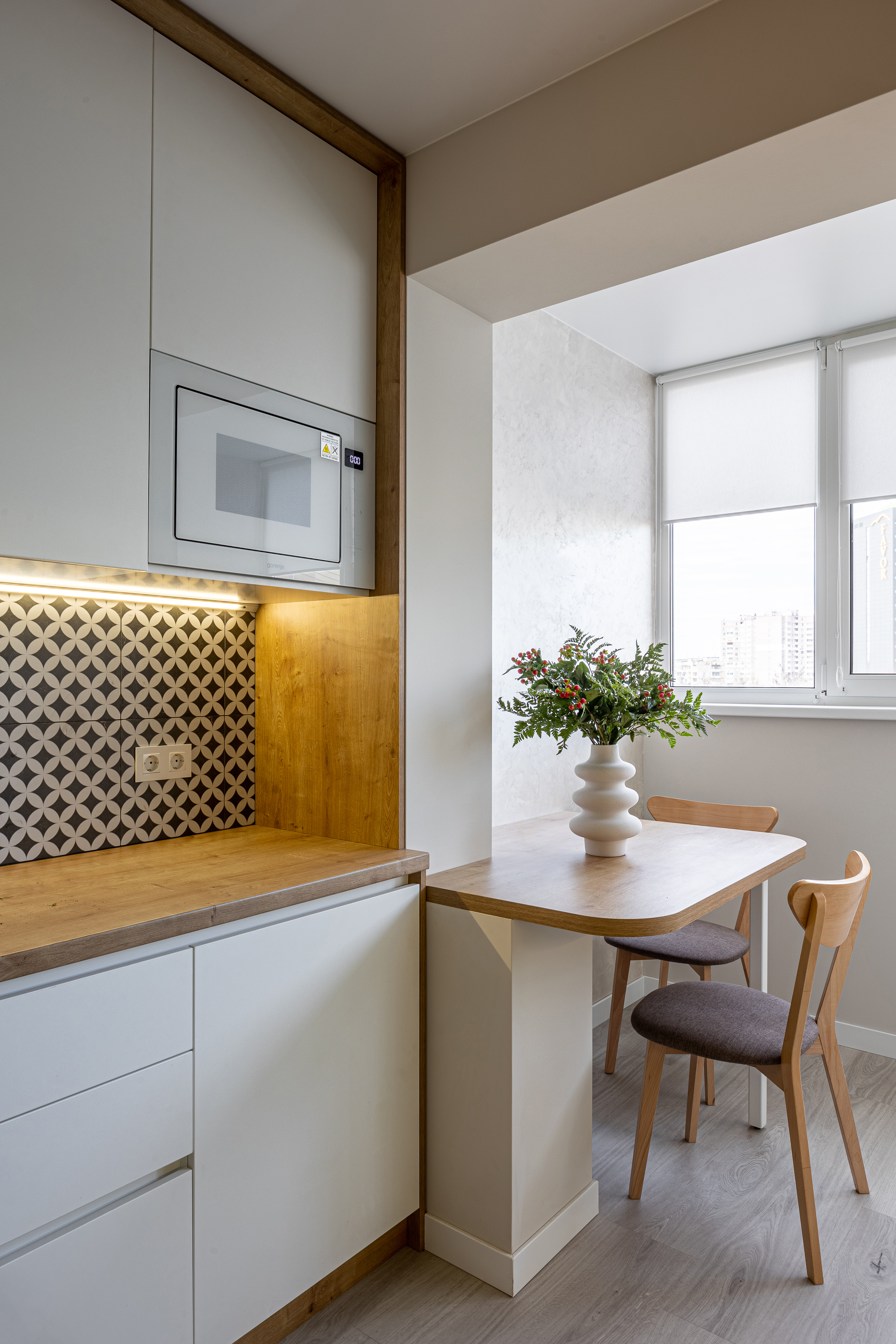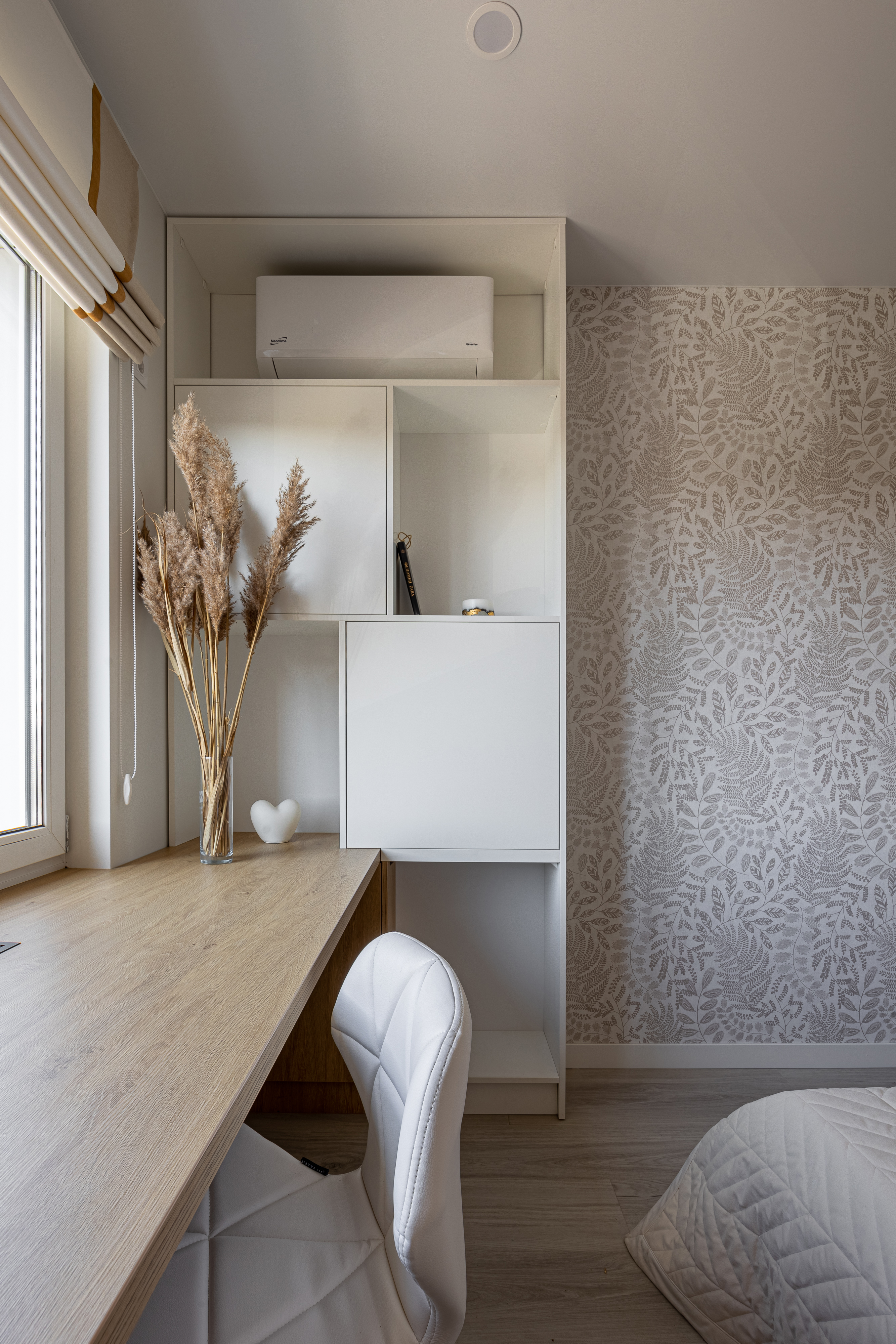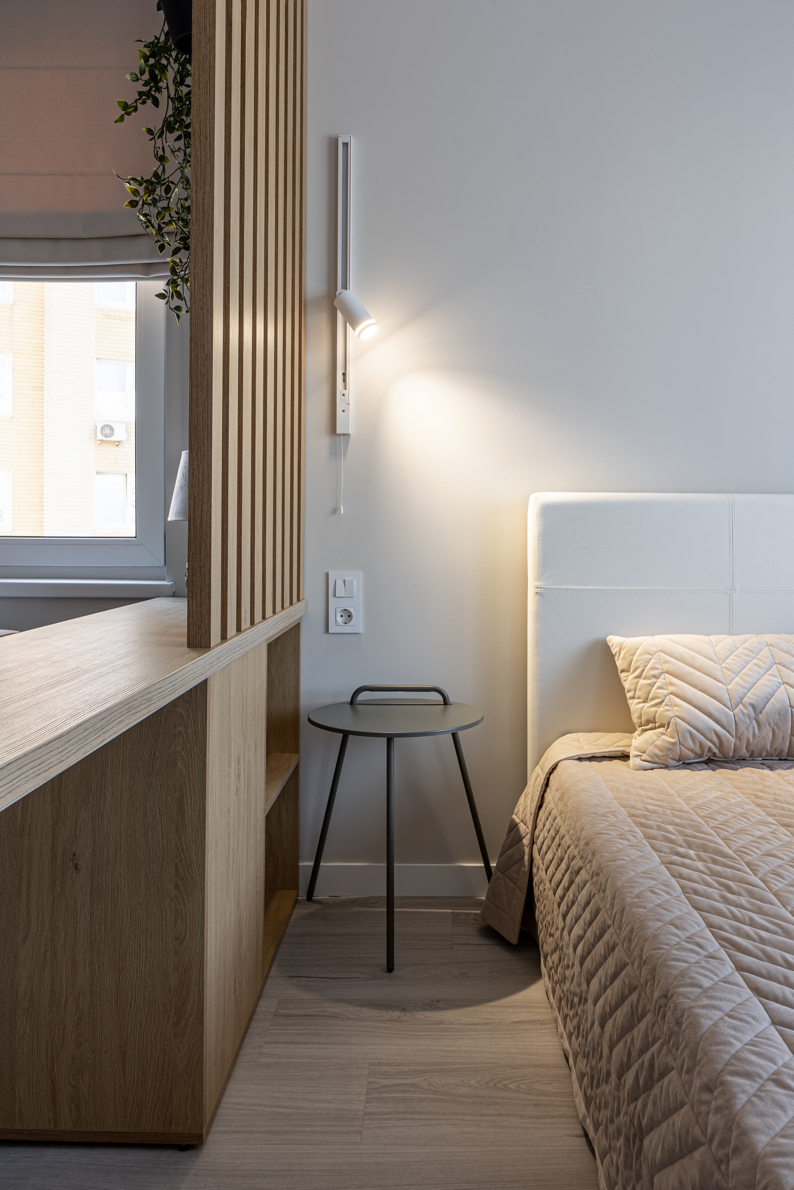 Интерьер квартиры наполнен светом, с атмосферой уюта, покоя и безмятежности. Спокойная природная цветовая гамма, трендовые акценты в фактурах и материалах. В результате получили цельный, стильный интерьер и счастливого заказчика.