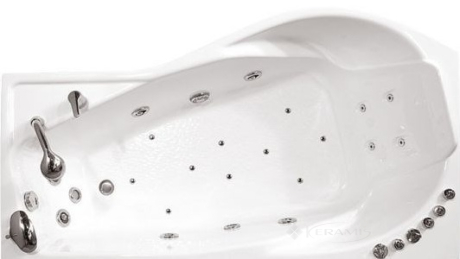 Акриловая гидромассажная ванна «МИШЕЛЬ» правая. Дно с рифленой массажной поверхностью,форма и объем позволяют совместить просторный уголок для душа и уютную купель. Удачный внешний размер ванны замечательно подходит для стандартной ванной комнаты.