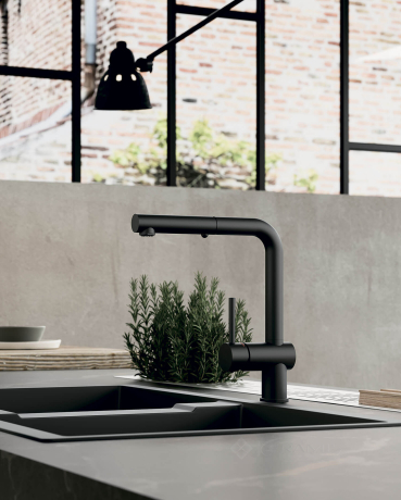 Цвет смесителя – черный матовый.