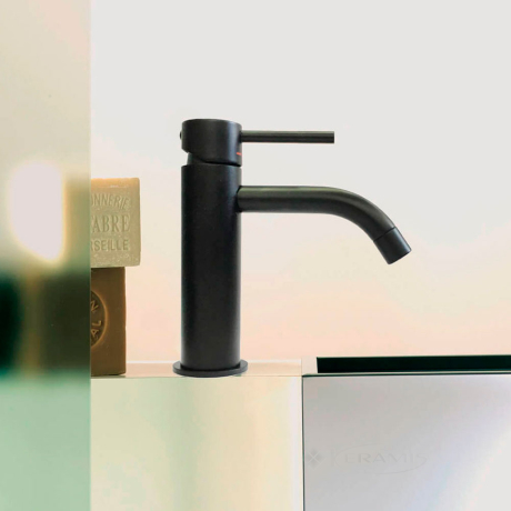 Италия, гарантия от произв. - 5 лет, цвет: черный, материал: латунь, однорычажный, установка на умывальник, механизм: керамический картридж