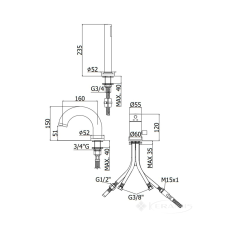 установка на борт ванны, на 3 отверстия