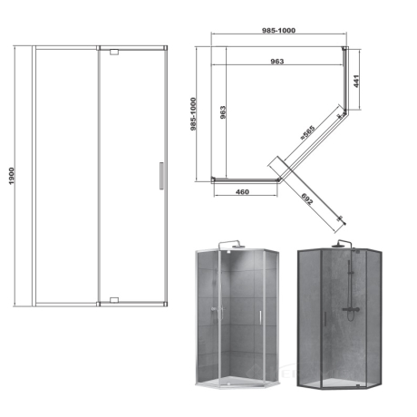Италия, гарантия от произв. - 5 лет, стекло, прозрачное, двери распашные, профиль хром