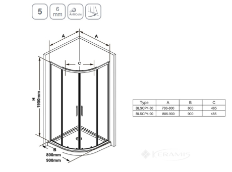 Изделие состоит из двух неподвижных прямых частей и двух изогнутых частей в виде раздвижной двери. Монтируется в облицованном углу ванной комнаты на душевые поддоны RAVAK Ronda, Elipso, Elipso Pro, Elipso Pro Flat, Elipso Pro Chrome или непосредственно на пол со встроенным душевым каналом или трапом.