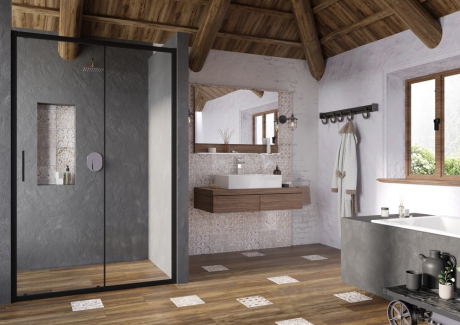 Чехия, гарантия от произв. - 5 лет, безопасное стекло, transparent, двери раздвижные, профиль чёрный