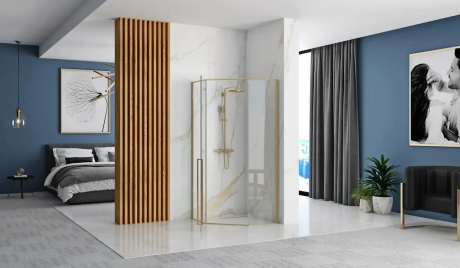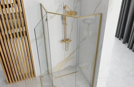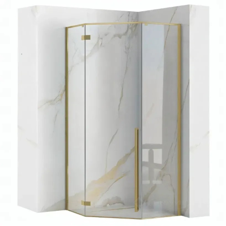 Прекрасная кабина Diamond с геометрическим оттенком обязательно освежит любой интерьер ванной комнаты и внесет удивительную атмосферу, независимо от того, выдержан ли интерьер в современном стиле, стиле лофт или другом стиле. Золотые профили в сочетании с прозрачным стеклом – не что иное, как идеальный баланс в дизайне всего продукта. Стильная душевая кабина REA DIAMOND изготовлена из безопасного прозрачного закаленного стекла. Модель подходит для установки на пол или поддон. Для производства профилей толщиной 20 мм использовался высококачественный алюминий. Угловая кабина откидывается удобными стальными ручками. Поверхность изделия покрыта функциональным покрытием Easy Clean. Благодаря этому его легко содержать в чистоте. Набор прокладок также продается вместе с кабиной.
