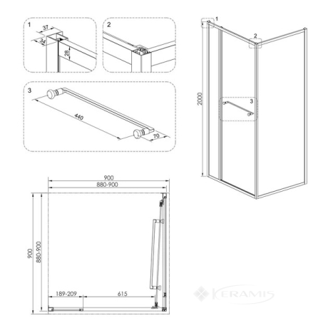 Испания, гарантия от произв. - 3 года, стекло, прозрачное, двери распашные, профиль чёрный