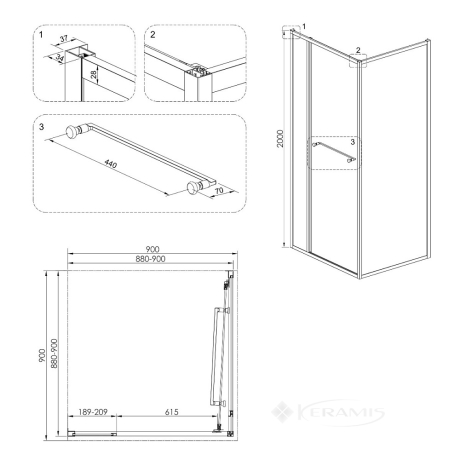 Испания, гарантия от произв. - 3 года, стекло, прозрачное, двери распашные, профиль хром