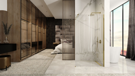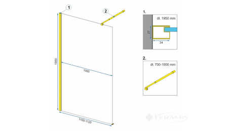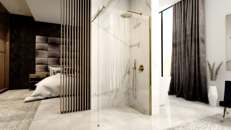 Перейти к подробному описаниюДушевая перегородка Rea Aero 110x195 gold (REA-K8441)