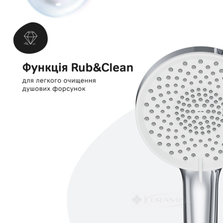 Ручной душ с 3 режимами подачи воды (Spray, EnerJet и Spray + Massage) изготовлен из высококачественного и экологически безопасного ABS-пластика, устойчивого к царапинам и легкому в очистке благодаря функции Rub&Clean.