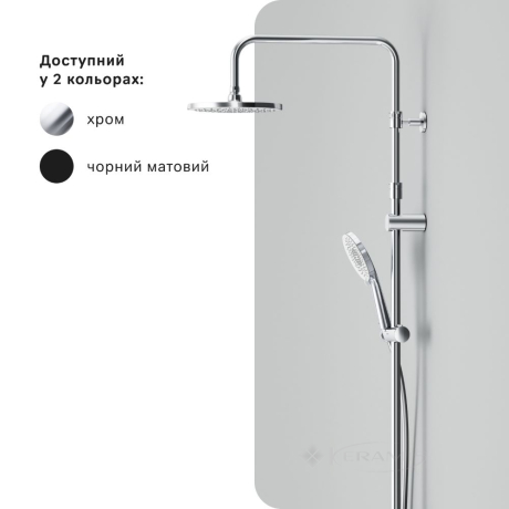 Душевая система изготовлена из крепкой латуни с хромированным покрытием.