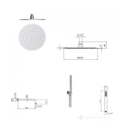 Верх. душ: Ø 250мм, нержавеющая сталь