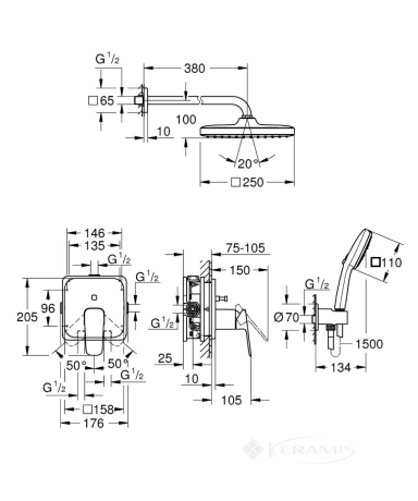 Перейти к подробному описаниюдушевая система Grohe Cubeo с Tempesta 250, хром (1053360000)