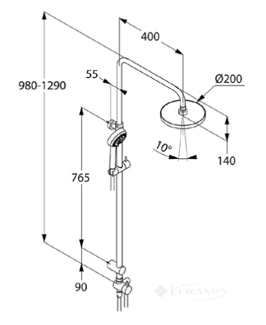 - Состав комплектадушевая система с верхним и ручным душем