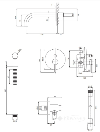 - душевой шланг в латунной оплетке, длина: 150 см;