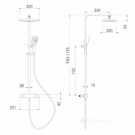 - Состав комплектадушевая система с термостатом, верхним и ручным душем