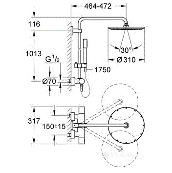 Перейти к подробному описаниюдушевая система Grohe Rainshower (27966000)