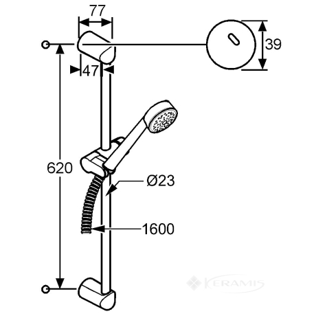 Германия, гарантия от произв. - 5 лет, душевой гарнитур из штанги, шланга и душевой лейки, цвет: хром