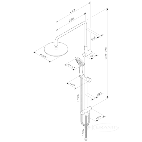 Диаметр душевых леек (верхний душ 220 мм и ручной душ 110 мм) позволит ощутить преимущества тропического душа даже в стандартной ванной, тогда как увеличенная длина шланга 1750 мм обеспечит свободу движений во время принятия душа. Продуманные детали для удобства использования: телескопическая поворотная штанга регулируется по высоте в диапазоне от 1030 до 1460 мм, обеспечивая комфорт для людей любого роста.