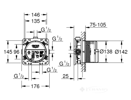- комплект верхней монтажной части для GROHE Rapido SmartBox 35600000